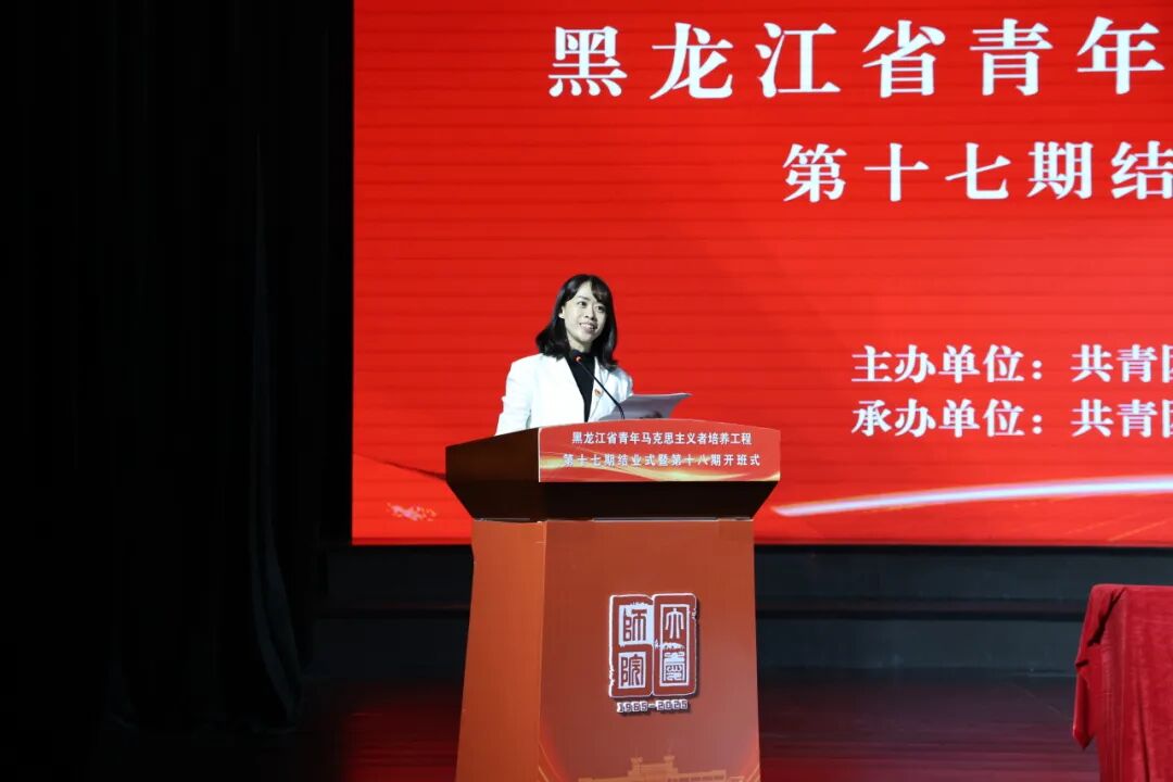王江涛同志向结业的第十七期学员们表示祝贺,向新参训的第十八期学员们表示欢迎。他对全体青马学员提出三点期望,一要深学细悟,做信仰坚定的理论骨干,持续研读马克思主义经典著作,深入领会“两个结合”,自觉用党的创新理论武装头脑;二要知行合一,做明理笃行的实干先锋,把个人成长融入龙江发展实践,积极参与乡村振兴、企业转型、科研创新等实践项目,在实干中锤炼本领;三要春风化雨,做党的创新理论的积极传播者,依托青年宣讲团、“青马微课堂”等形式,带动更多青年坚定理想信念、投身强国伟业。