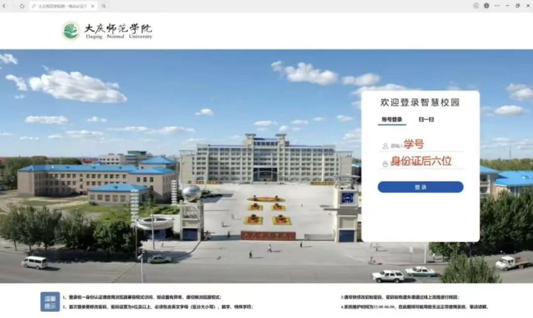 第一步:访问一站式服务大厅sh.dqnu.edu.cn统一身份认证账号,新生可用身份证号登录,初始密码为身份证号后六位。